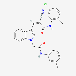 (Z)-N-(5-chloro-2-methylphenyl)-2-cyano-3-[1-[2-(3-methylanilino)-2-oxoethyl]indol-3-yl]prop-2-enamide is a complex organic compound with potential applications in various fields of scientific research. This compound is characterized by its unique structural features, including a cyano group, an indole moiety, and a chlorinated phenyl ring, which contribute to its diverse chemical reactivity and biological activity.