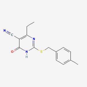 4-ethyl-2-[(4-methylphenyl)methylsulfanyl]-6-oxo-1H-pyrimidine-5-carbonitrile is a complex organic compound with a unique structure that includes a pyrimidine ring, a nitrile group, and a sulfanyl group