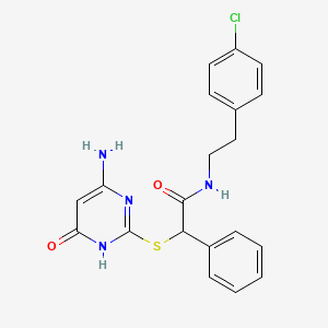 2-[(4-amino-6-oxo-1,6-dihydropyrimidin-2-yl)sulfanyl]-N-[2-(4-chlorophenyl)ethyl]-2-phenylacetamide is a complex organic compound with a unique structure that includes a pyrimidine ring, a phenylacetamide group, and a chlorophenyl ethyl group
