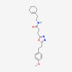 N-[2-(cyclohexen-1-yl)ethyl]-3-[5-[2-(4-methoxyphenyl)ethyl]-1,3,4-oxadiazol-2-yl]propanamide is a complex organic compound with potential applications in various fields such as chemistry, biology, medicine, and industry. This compound features a cyclohexenyl group, a methoxyphenyl group, and an oxadiazole ring, making it a unique molecule with diverse chemical properties.