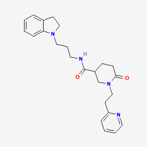 N-[3-(2,3-dihydroindol-1-yl)propyl]-6-oxo-1-(2-pyridin-2-ylethyl)piperidine-3-carboxamide is a complex organic compound that features a unique combination of indole and piperidine moieties