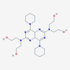 2-[[2-[Bis(2-hydroxyethyl)amino]-4,8-di(piperidin-1-yl)-4a,8a-dihydropyrimido[5,4-d]pyrimidin-6-yl]-(2-hydroxyethyl)amino]ethanol is a complex organic compound that features multiple functional groups, including hydroxyl groups, piperidine rings, and a pyrimidopyrimidine core