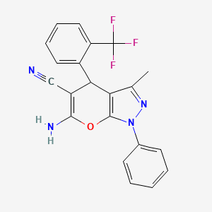 6-amino-3-methyl-1-phenyl-4-[2-(trifluoromethyl)phenyl]-1,4-dihydropyrano[2,3-c]pyrazole-5-carbonitrile