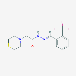 2-thiomorpholin-4-yl-N-[(E)-[2-(trifluoromethyl)phenyl]methylideneamino]acetamide is a synthetic organic compound with the molecular formula C14H16F3N3OS and a molecular weight of 331.36 g/mol This compound is characterized by the presence of a thiomorpholine ring, a trifluoromethyl group, and a Schiff base linkage