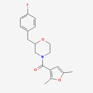 (2,5-Dimethylfuran-3-yl)-[2-[(4-fluorophenyl)methyl]morpholin-4-yl]methanone is a complex organic compound that features a furan ring substituted with two methyl groups, a morpholine ring, and a fluorophenyl group