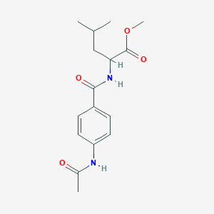 The mechanism of action of methyl N-{[4-(acetylamino)phenyl]carbonyl}leucinate involves its interaction with specific molecular targets, such as enzymes or receptors. The acetylamino group can form hydrogen bonds with active sites of enzymes, leading to inhibition or modulation of enzyme activity. Additionally, the leucinate moiety can interact with hydrophobic pockets in proteins, affecting their function and stability.