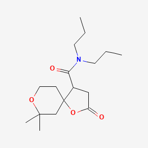 7,7-Dimethyl-2-oxo-N,N-dipropyl-1,8-dioxaspiro[4.5]decane-4-carboxamide is a complex organic compound with a molecular formula of C17H29NO4. This compound belongs to the class of spiro compounds, which are characterized by their unique ring structures