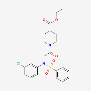 Ethyl 1-[2-[N-(benzenesulfonyl)-3-chloroanilino]acetyl]piperidine-4-carboxylate is a complex organic compound that features a piperidine ring, a benzenesulfonyl group, and a chloroaniline moiety