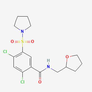InChI=1S/C16H20Cl2N2O4S/c17-13-9-14(18)15(25(22,23)20-5-1-2-6-20)8-12(13)16(21)19-10-11-4-3-7-24-11/h8-9,11H,1-7,10H2,(H,19,21) | |