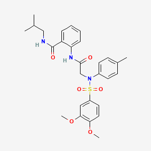 2-({N-[(3,4-dimethoxyphenyl)sulfonyl]-N-(4-methylphenyl)glycyl}amino)-N-(2-methylpropyl)benzamide is a complex organic compound characterized by its unique structure, which includes a sulfonyl group, a dimethoxyphenyl group, and a benzamide moiety