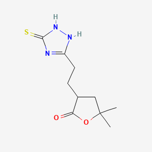 5,5-dimethyl-3-[2-(5-thioxo-4,5-dihydro-1H-1,2,4-triazol-3-yl)ethyl]dihydro-2(3H)-furanone is a complex organic compound that features a unique combination of a triazole ring and a furanone structure