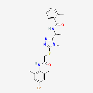 N-[1-[5-[2-(4-bromo-2,6-dimethylanilino)-2-oxoethyl]sulfanyl-4-methyl-1,2,4-triazol-3-yl]ethyl]-2-methylbenzamide is a complex organic compound with potential applications in various scientific fields. This compound features a unique structure that includes a triazole ring, a brominated aromatic ring, and a benzamide moiety, making it an interesting subject for chemical research and potential pharmaceutical applications.