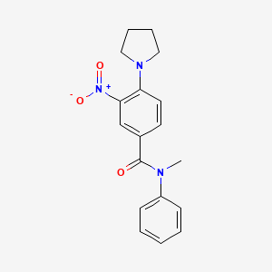 N-methyl-3-nitro-N-phenyl-4-pyrrolidin-1-ylbenzamide is a complex organic compound with a unique structure that includes a nitro group, a phenyl ring, and a pyrrolidinyl group