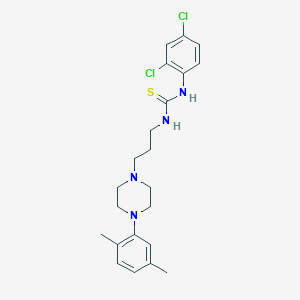 N-(2,4-dichlorophenyl)-N’-{3-[4-(2,5-dimethylphenyl)-1-piperazinyl]propyl}thiourea is a complex organic compound characterized by its unique structure, which includes dichlorophenyl and dimethylphenyl groups attached to a piperazine ring via a propyl linker, and a thiourea moiety