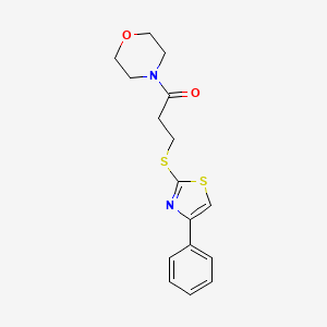 InChI=1S/C16H18N2O2S2/c19-15(18-7-9-20-10-8-18)6-11-21-16-17-14(12-22-16)13-4-2-1-3-5-13/h1-5,12H,6-11H2 | |