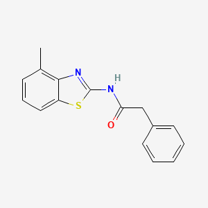 The synthesis of N-(4-METHYL-13-BENZOTHIAZOL-2-YL)-2-PHENYLACETAMIDE typically involves the reaction of 4-methyl-1,3-benzothiazol-2-amine with phenylacetyl chloride in the presence of a base such as triethylamine. The reaction is carried out in an organic solvent like dichloromethane under reflux conditions. The product is then purified using column chromatography to obtain the desired compound in high yield .