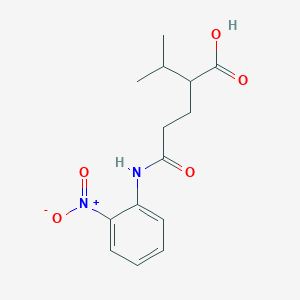 The mechanism by which 5-(2-Nitroanilino)-5-oxo-2-propan-2-ylpentanoic acid exerts its effects involves its interaction with specific molecular targets. The nitrophenyl group may participate in electron transfer reactions, while the isopropyl group can influence the compound’s hydrophobic interactions. These interactions can affect various biochemical pathways, leading to the compound’s observed effects.