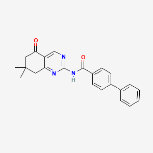 The mechanism of action of N-(7,7-dimethyl-5-oxo(6,7,8-trihydroquinazolin-2-yl))(4-phenylphenyl)carboxami de involves its interaction with specific molecular targets, such as enzymes or receptors. The compound may inhibit or activate these targets, leading to various biological effects. The exact pathways involved depend on the specific application and the biological system being studied.
