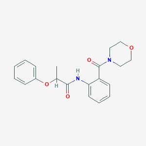 The synthesis of N-[2-(morpholine-4-carbonyl)phenyl]-2-phenoxypropanamide typically involves the reaction of 2-phenoxypropanoic acid with 2-(4-morpholinylcarbonyl)aniline. The reaction is carried out under controlled conditions, often using a coupling reagent such as dicyclohexylcarbodiimide (DCC) to facilitate the formation of the amide bond. The reaction is usually performed in an organic solvent like dichloromethane or dimethylformamide (DMF) at room temperature or slightly elevated temperatures.
