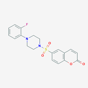 6-[4-(2-Fluoro-phenyl)-piperazine-1-sulfonyl]-chromen-2-one is a complex organic compound that belongs to the class of chromen-2-one derivatives This compound is characterized by the presence of a fluorophenyl group, a piperazinyl moiety, and a sulfonyl group attached to the chromen-2-one core