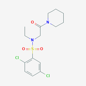 2,5-Dichloro-N-ethyl-N-[2-oxo-2-(1-piperidinyl)ethyl]benzenesulfonamide is a chemical compound with a complex structure, characterized by the presence of dichloro, ethyl, oxo, piperidinyl, and benzenesulfonamide groups