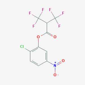2-chloro-5-nitrophenyl 3,3,3-trifluoro-2-(trifluoromethyl)propanoate is an organic compound that features both nitro and trifluoromethyl groups, making it a molecule of interest in various chemical and industrial applications. The presence of these functional groups imparts unique chemical properties, including high reactivity and stability under certain conditions.