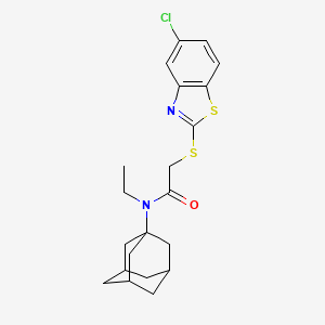 N-(ADAMANTAN-1-YL)-2-[(5-CHLORO-1,3-BENZOTHIAZOL-2-YL)SULFANYL]-N-ETHYLACETAMIDE is a complex organic compound that features an adamantyl group, a benzothiazole moiety, and a thioether linkage