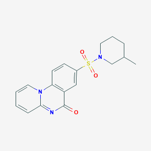 8-[(3-METHYLPIPERIDINO)SULFONYL]-6H-PYRIDO[1,2-A]QUINAZOLIN-6-ONE is a complex organic compound that belongs to the class of quinazolinone derivatives. This compound is characterized by its unique structure, which includes a pyridoquinazolinone core with a sulfonyl group attached to a 3-methylpiperidine moiety. The compound is of significant interest in various fields of scientific research due to its potential biological and chemical properties.