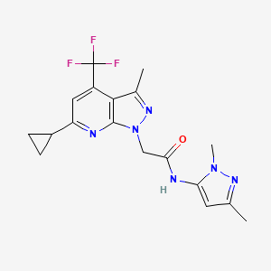 2-[6-CYCLOPROPYL-3-METHYL-4-(TRIFLUOROMETHYL)-1H-PYRAZOLO[3,4-B]PYRIDIN-1-YL]-N~1~-(1,3-DIMETHYL-1H-PYRAZOL-5-YL)ACETAMIDE is a complex organic compound characterized by its unique structure, which includes a pyrazolo[3,4-b]pyridine core, a cyclopropyl group, and a trifluoromethyl group