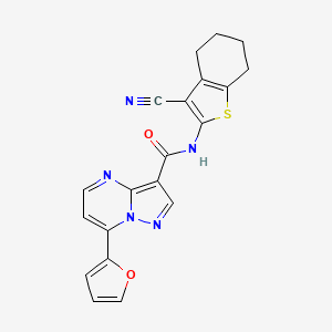 N-(3-CYANO-4,5,6,7-TETRAHYDRO-1-BENZOTHIOPHEN-2-YL)-7-(2-FURYL)PYRAZOLO[1,5-A]PYRIMIDINE-3-CARBOXAMIDE is a complex organic compound with potential applications in various scientific fields. This compound features a unique structure that includes a benzothiophene ring, a furan ring, and a pyrazolopyrimidine core, making it an interesting subject for research in chemistry, biology, and medicine.