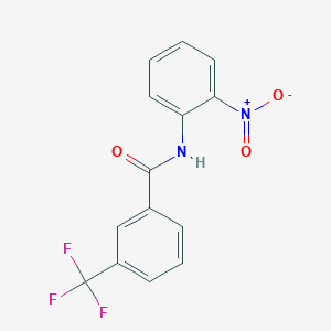 N-(2-nitrophenyl)-3-(trifluoromethyl)benzamide is unique due to the specific positioning of the nitrophenyl and trifluoromethyl groups, which confer distinct chemical and biological properties. The trifluoromethyl group enhances the compound’s stability and lipophilicity, while the nitrophenyl group provides sites for further chemical modification and interaction with biological targets.