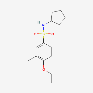 N-cyclopentyl-4-ethoxy-3-methylbenzenesulfonamide is an organic compound that belongs to the class of sulfonamides. Sulfonamides are known for their diverse applications in medicinal chemistry, particularly as antimicrobial agents. This compound features a cyclopentyl group attached to the nitrogen atom of the sulfonamide, an ethoxy group at the fourth position, and a methyl group at the third position of the benzene ring.