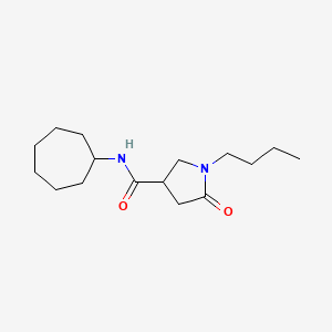 1-Butyl-N-cycloheptyl-5-oxopyrrolidine-3-carboxamide is an organic compound with the molecular formula C₁₆H₂₈N₂O₂ It is a member of the pyrrolidinecarboxamide family, characterized by a pyrrolidine ring substituted with a butyl group, a cycloheptyl group, and a carboxamide group