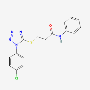 The mechanism of action of 3-{[1-(4-chlorophenyl)-1H-tetrazol-5-yl]sulfanyl}-N-phenylpropanamide involves its interaction with specific molecular targets. The tetrazole ring can interact with enzymes or receptors, modulating their activity. The chlorophenyl group may enhance the compound’s binding affinity to its targets, while the sulfanyl linkage can influence its reactivity and stability.
