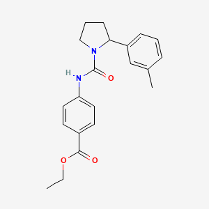InChI=1S/C21H24N2O3/c1-3-26-20(24)16-9-11-18(12-10-16)22-21(25)23-13-5-8-19(23)17-7-4-6-15(2)14-17/h4,6-7,9-12,14,19H,3,5,8,13H2,1-2H3,(H,22,25) | |