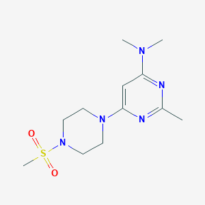 6-(4-Methanesulfonylpiperazin-1-YL)-N,N,2-trimethylpyrimidin-4-amine is a complex organic compound that has garnered interest in various fields of scientific research. This compound is characterized by its unique structure, which includes a methanesulfonyl group attached to a piperazine ring, and a trimethylpyrimidinyl group. The presence of these functional groups imparts specific chemical properties and reactivity to the compound.