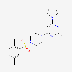 4-[4-(2,5-Dimethylbenzenesulfonyl)piperazin-1-YL]-2-methyl-6-(pyrrolidin-1-YL)pyrimidine is a complex organic compound known for its potential applications in medicinal chemistry. This compound is characterized by its unique structure, which includes a piperazine ring, a pyrimidine ring, and a sulfonyl group. It has been studied for its potential as a dipeptidyl peptidase IV (DPP-4) inhibitor, which is significant in the treatment of type II diabetes mellitus .