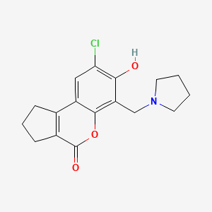 The mechanism of action of 8-chloro-7-hydroxy-6-(pyrrolidin-1-ylmethyl)-2,3-dihydrocyclopenta[c]chromen-4(1H)-one involves its interaction with specific molecular targets and pathways. For example, it may act as an inhibitor of certain enzymes or receptors, leading to modulation of biological processes. The exact molecular targets and pathways can vary depending on the specific application and context .