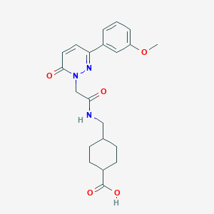 TRANS-4-[({[3-(3-METHOXYPHENYL)-6-OXOPYRIDAZIN-1(6H)-YL]ACETYL}AMINO)METHYL]CYCLOHEXANECARBOXYLIC ACID is a complex organic compound with a unique structure that includes a methoxyphenyl group, a pyridazinone ring, and a cyclohexanecarboxylic acid moiety
