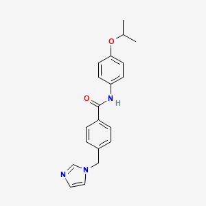4-(imidazol-1-ylmethyl)-N-(4-propan-2-yloxyphenyl)benzamide is a synthetic organic compound that has garnered interest due to its potential applications in various fields, including medicinal chemistry and material science. This compound features an imidazole ring, a benzamide group, and a propan-2-yloxyphenyl moiety, which contribute to its unique chemical properties and reactivity.