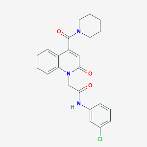 N-(3-CHLOROPHENYL)-2-[2-OXO-4-(PIPERIDINE-1-CARBONYL)-1,2-DIHYDROQUINOLIN-1-YL]ACETAMIDE is a synthetic organic compound that belongs to the class of quinoline derivatives. These compounds are known for their diverse biological activities and are often studied for their potential therapeutic applications.