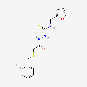 InChI=1S/C15H16FN3O2S2/c16-13-6-2-1-4-11(13)9-23-10-14(20)18-19-15(22)17-8-12-5-3-7-21-12/h1-7H,8-10H2,(H,18,20)(H2,17,19,22) | |