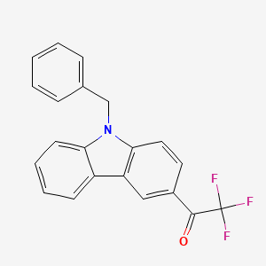 The mechanism of action of 1-(9-Benzylcarbazol-3-yl)-2,2,2-trifluoroethanone involves its interaction with molecular targets through its functional groups. The trifluoromethyl group enhances the compound’s lipophilicity, allowing it to interact with lipid membranes and proteins. The carbazole moiety can participate in π-π interactions with aromatic residues in proteins, influencing their function.