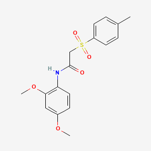 N-(2,4-dimethoxyphenyl)-2-[(4-methylphenyl)sulfonyl]acetamide is an organic compound that belongs to the class of sulfonamides. These compounds are known for their diverse applications in medicinal chemistry, particularly as antimicrobial agents. The presence of both methoxy and sulfonyl groups in the molecule suggests potential biological activity and utility in various chemical reactions.