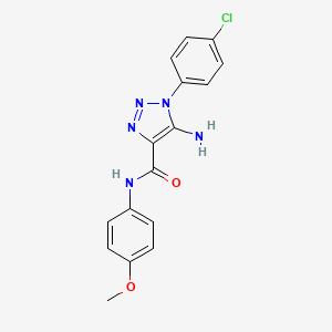 The synthesis of 5-amino-1-(4-chlorophenyl)-N-(4-methoxyphenyl)-1H-1,2,3-triazole-4-carboxamide typically involves a multi-step process One common method starts with the preparation of 4-chlorophenylhydrazine, which is then reacted with ethyl acetoacetate to form the corresponding hydrazone This intermediate undergoes cyclization with sodium azide to yield the triazole ring