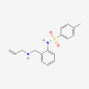 The synthesis of 4-methyl-N-[2-[(prop-2-enylamino)methyl]phenyl]benzenesulfonamide typically involves multiple steps. One common method starts with the sulfonation of toluene to produce 4-methylbenzenesulfonyl chloride. This intermediate is then reacted with 2-[(prop-2-enylamino)methyl]aniline under basic conditions to yield the final product. The reaction conditions often include the use of solvents like dichloromethane and catalysts such as triethylamine to facilitate the reaction.