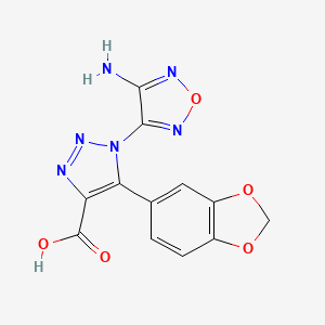 1-(4-AMINO-1,2,5-OXADIAZOL-3-YL)-5-(2H-1,3-BENZODIOXOL-5-YL)-1H-1,2,3-TRIAZOLE-4-CARBOXYLIC ACID is a complex organic compound that features multiple functional groups, including an amino group, an oxadiazole ring, a benzodioxole moiety, a triazole ring, and a carboxylic acid group. Compounds with such diverse functional groups often exhibit unique chemical and biological properties, making them of interest in various fields of scientific research.