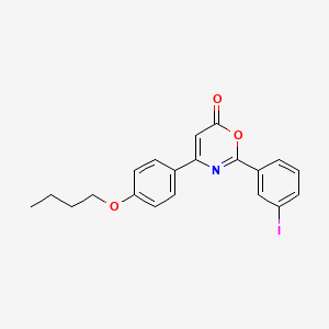4-(4-butoxyphenyl)-2-(3-iodophenyl)-6H-1,3-oxazin-6-one is a complex organic compound that belongs to the oxazinone family This compound is characterized by the presence of a butoxyphenyl group, an iodophenyl group, and an oxazinone ring