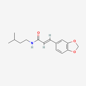 (E)-3-(1,3-BENZODIOXOL-5-YL)-N-ISOPENTYL-2-PROPENAMIDE is unique due to its specific combination of the benzodioxole moiety and the isopentyl group attached to a propenamide backbone. This unique structure imparts distinct chemical and biological properties, making it a valuable compound for research and development.