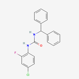 N-BENZHYDRYL-N’-(4-CHLORO-2-FLUOROPHENYL)UREA is an organic compound that belongs to the class of ureas It is characterized by the presence of a benzhydryl group and a 4-chloro-2-fluorophenyl group attached to the nitrogen atoms of the urea moiety